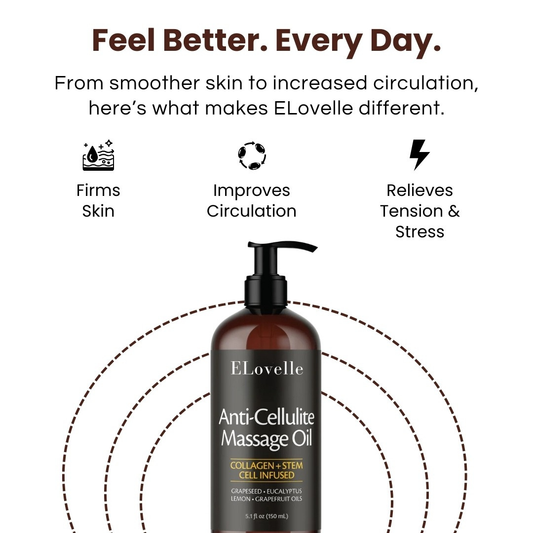 • Elovelle Anti-Cellulite Massage Oil bottle on a white background