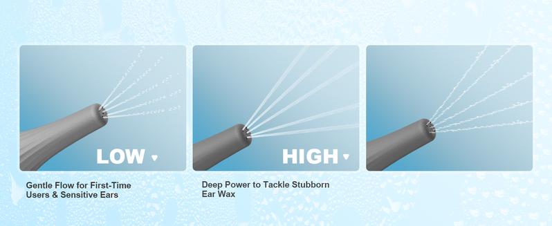 Our electric ear cleaner offers four adjustable pressure settings (Low, Strong, and Pulse) to ensure thorough yet safe ear canal irrigation. Simply choose your preferred intensity for a comfortable cleaning experience.