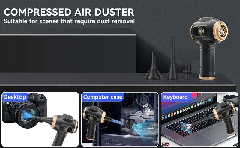 【AIR DUSTER AND VACUUM CLEANER IN ONE:】 You can easily use it to blow away dirt, debris, dust and other particles from the surface of objects, as well as sucking out tiny stubborn dirt hidden in keyboards, nooks and crannies. Vacuums on the front and blows on the back. Please note that the different nozzles correspond to the different connections on the front and back of the vacuum cleaner.