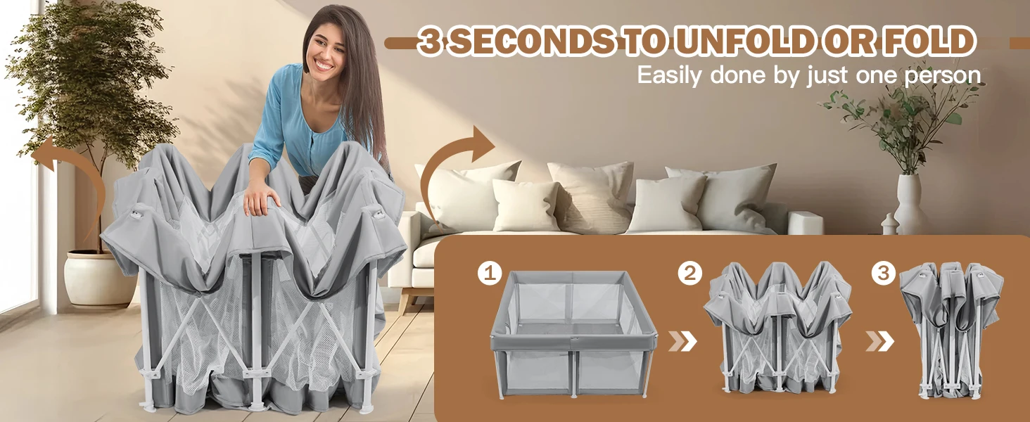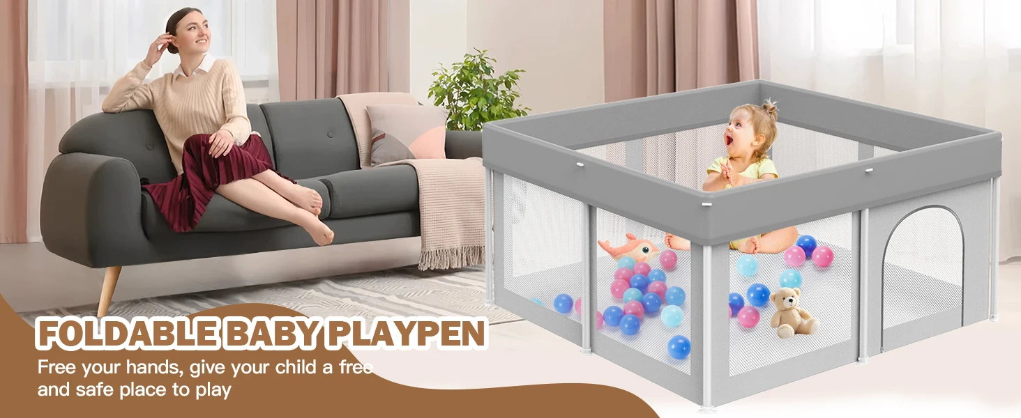 - PARENT'S GOOD HELPER:Collapsible baby play pen can provide a great safe space to prevent them from getting lost or touching dangerous areas.Parents can free their hands to attend to other tasks, making it an ideal solution for busy parents who require a safe space to entertain their children while they work or relax.