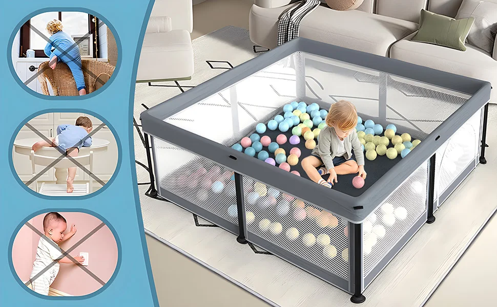 - LARGE PLAYPEN:The 50*50inch baby playpen is spacious enough ,Playpen can hold a lot of toys,we also give away ocean balls,Large enough space for children to crawl, stand, and play freely, helping babies explore and learn the world,giving mom more free time