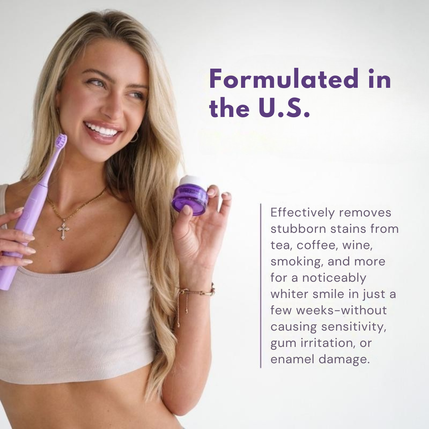 This advanced purple color-correcting formula instantly cancels out yellow tones, giving you a visibly whiter smile in moments. It gently lifts stubborn stains from coffee, tea, wine, and smoking—without causing sensitivity, irritating gums, or damaging enamel.