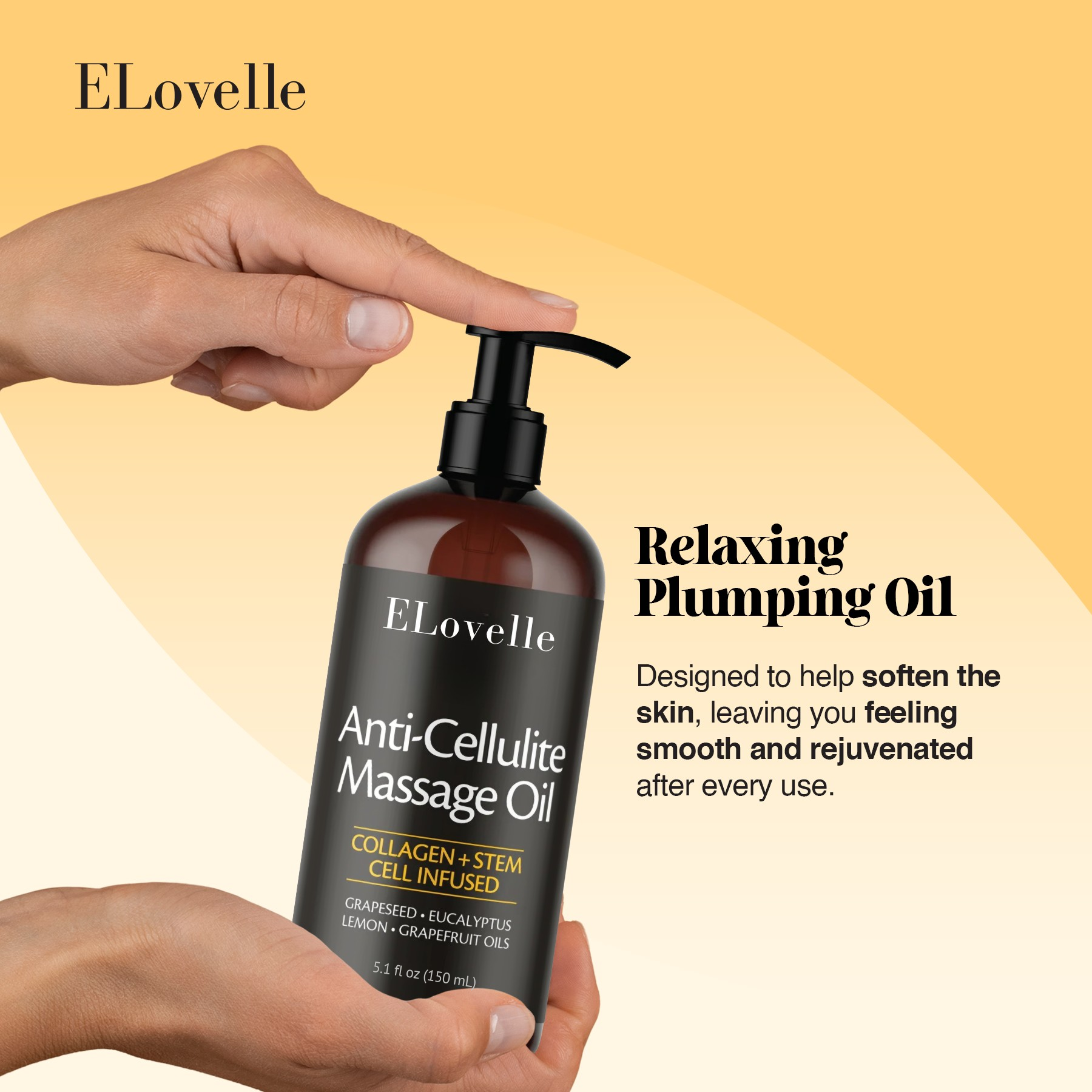 Elovelle Anti-Cellulite Massage Oil bottle on a white background